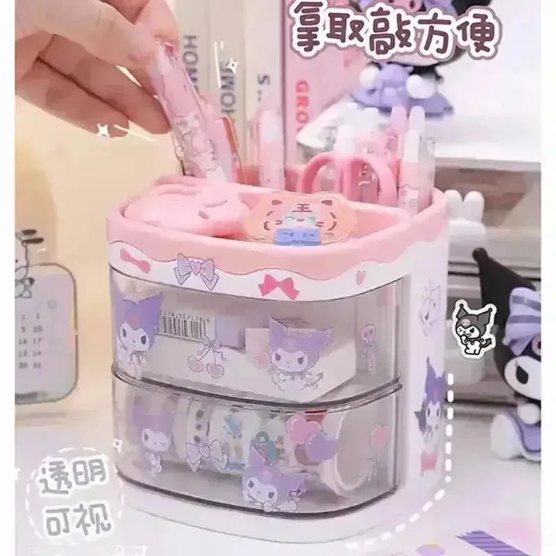 - Sanliou Charm: Embrace the adorable world of Sanliou with the charming Kuromi and My Melody design. This organizer adds a touch of kawaii to your workspace, making every task more enjoyable.