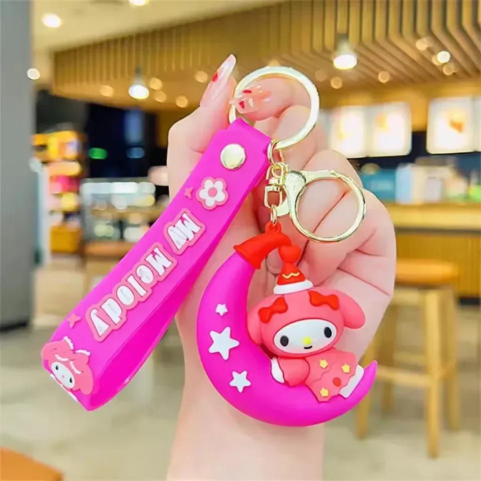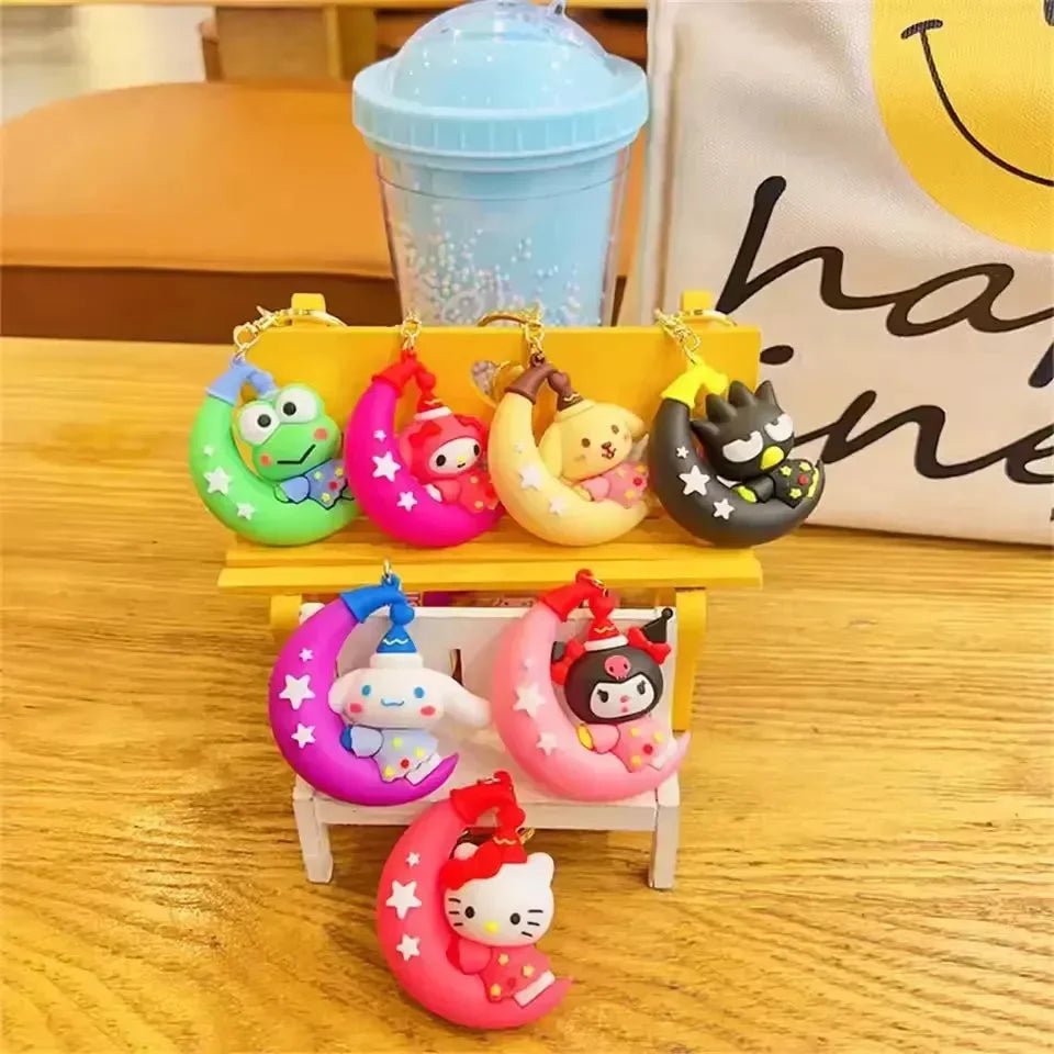 Imagine your favorite Sanliou friends embarking on a moonlit adventure! This collection brings together seven beloved characters, each perched adorably on a glowing crescent moon. From Cinnamoroll,s fluffy charm to Kuromi,s playful wink, Hello Kitty,s iconic bow, My Melody,s sweet hood, Pom Pom Purin,s laid-back smile, Keroppi,s cheerful grin, and Badtz-Maru,s cool smirk, each keychain captures the unique personality of these Sanliou stars. Crafted with premium quality 3D materials, these keychains are not only incredibly cute but also durable enough to add a touch of dreamy Sanliou magic to your keys, backpack, or handbag every day.